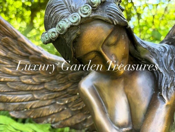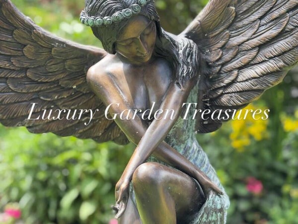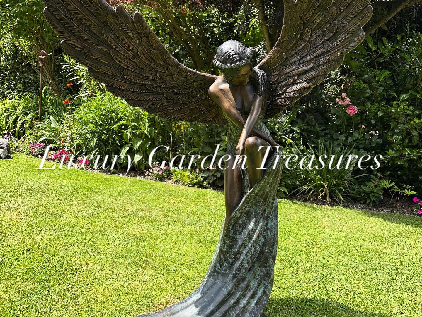 Standing with divine grace, this beautifully crafted Bronze Angel. Sculpted in exquisite detail, her flowing gown, outstretched wings, and serene expression evoke a sense of peace and presence. Suitable for luxury gardens, memorial spaces, or elegant estate entrances, this timeless piece offers a celestial focal point for any setting. She stands out when elevated ie standing on a wall.