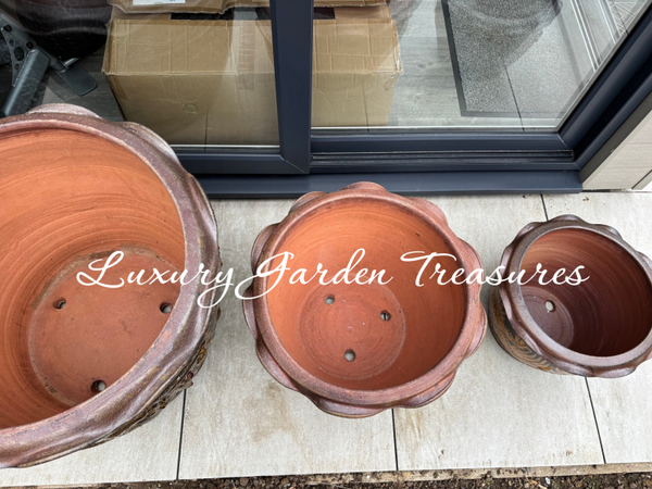 Hand-Crafted Golden Dragon Ceramic Planters – Luxury Garden Treasures £365 set of 3 pots