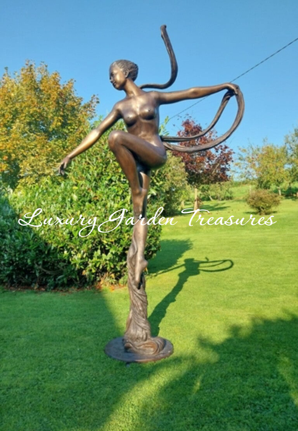 Each figure is sculpted with remarkable detail, from the delicate flow of their forms to the timeless expressions of joy and freedom. Cast in solid bronze with a rich patina finish, these statues radiate sophistication and artistic presence.