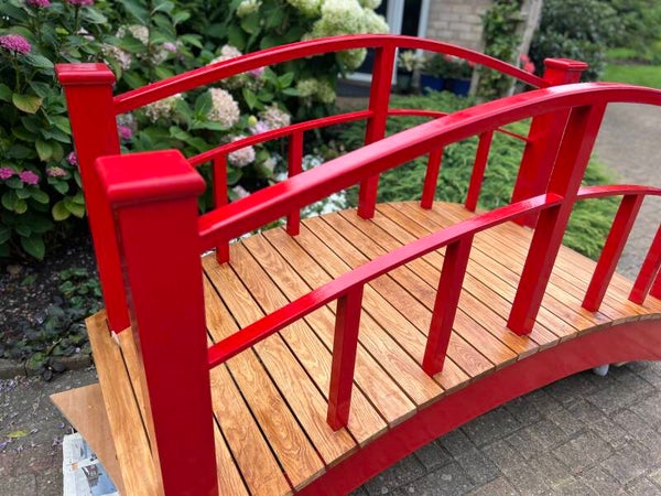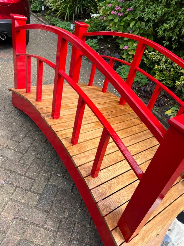 Our custom 6ft Japanese red arched bridge is a true statement piece, designed to bring elegance, tranquillity, and a touch of the Orient to any outdoor space. Handcrafted with care, this bridge combines traditional Japanese design with robust construction, making it both decorative and functional.