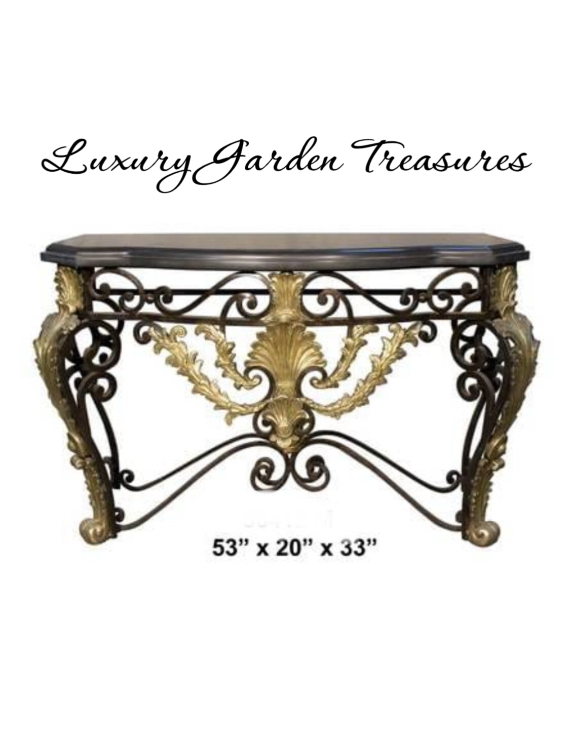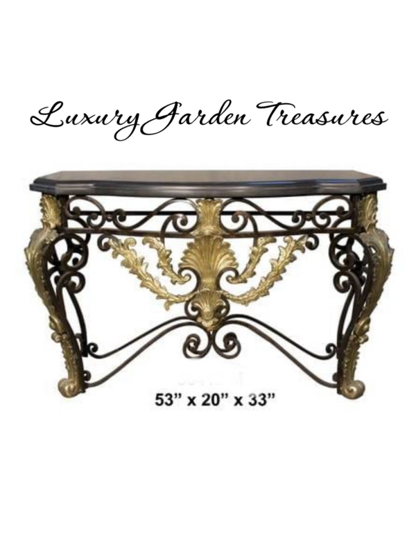 A statement of timeless elegance, this exquisite bronze console table features ornate hand-cast scrollwork with rich gold highlights, paired with a sleek black marble top. Its refined craftsmanship and intricate detailing make it a true luxury piece, perfect for enhancing entrance halls, living rooms, or sophisticated interiors.