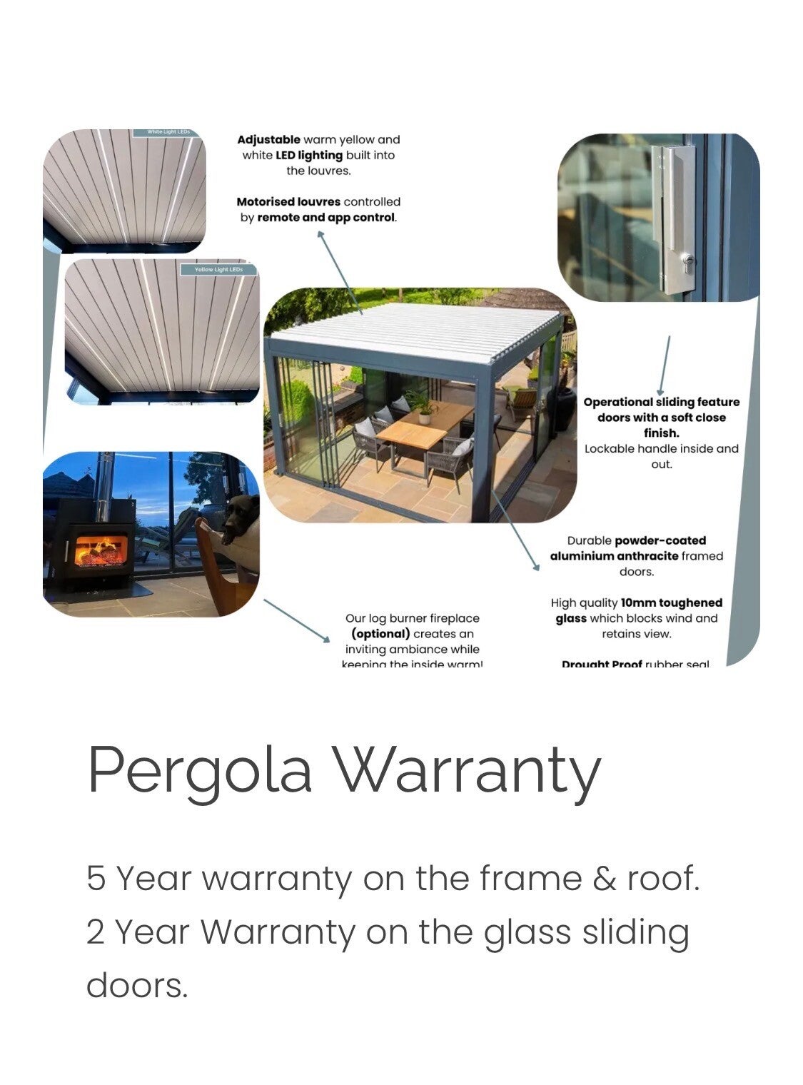 The minimalist frame looks great in powder-coated aluminium and is an absolute cinch to wipe down and maintain and keep it looking like new! Additionally, an optional log burner can be added to the Mirage model, providing extra warmth and ambiance, making it the perfect all-year-round retreat.